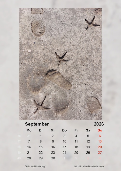 (Unkostenbeitrag: großer Kalender A3 14 €, kleiner Kalender A4 9 €).