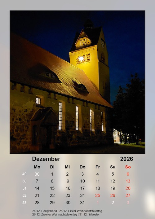 Wie immer sind die Kalender am letzten Samstag vor Weihnachten im Gemeindehaus erhältlich.